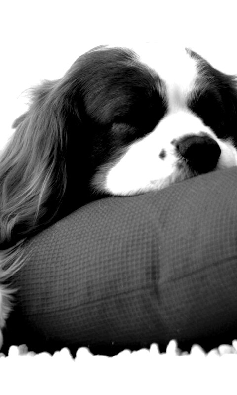 «Спящий щенок на красной подушке»