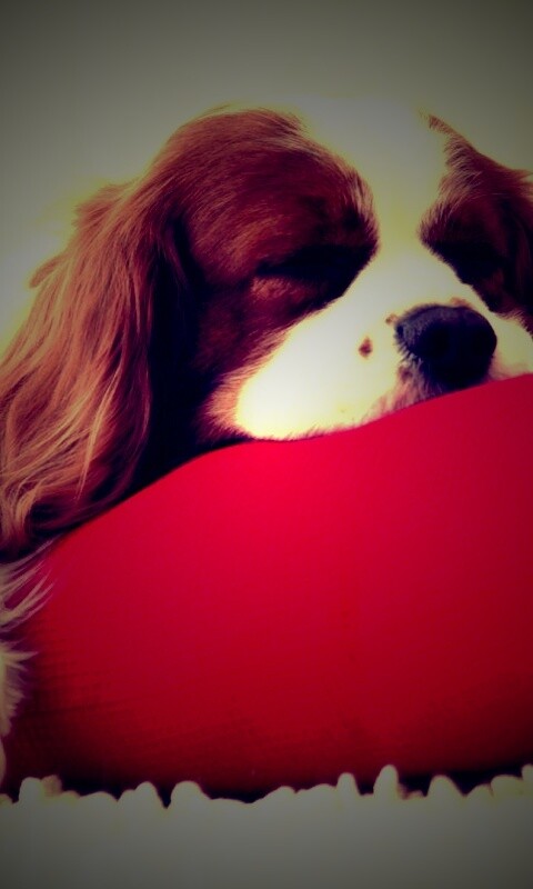 «Спящий щенок на красной подушке»