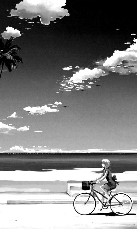 «Девушка едет на велосипеде вдоль берега»