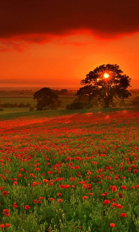 «Закат на поле красных цветов»