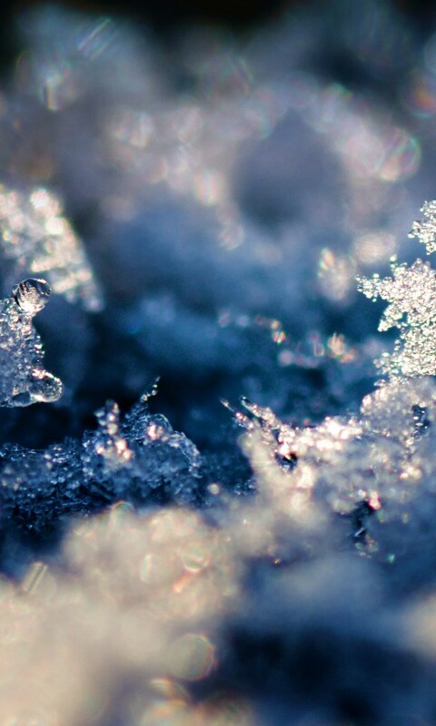 Обои для рабочего стола «Макро фото снега» 480х800 с фильтром vibrance (оригинал 2560х1600)