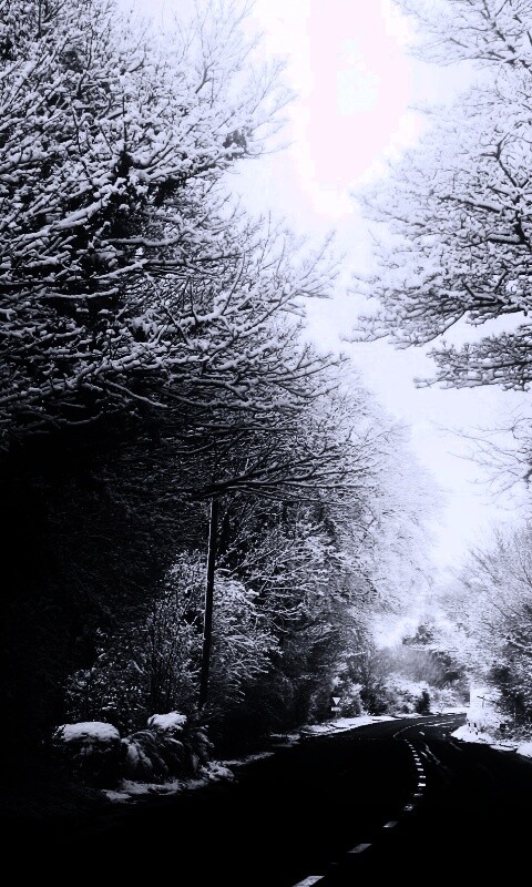 Обои для рабочего стола «Дорога через зимний лес» 480х800 с фильтром gotham (оригинал 2560х1600)