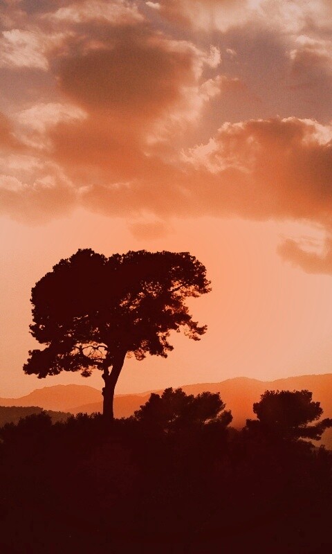Обои для рабочего стола «Закат над холмами» 480х800 с фильтром toaster (оригинал 2560х1600)