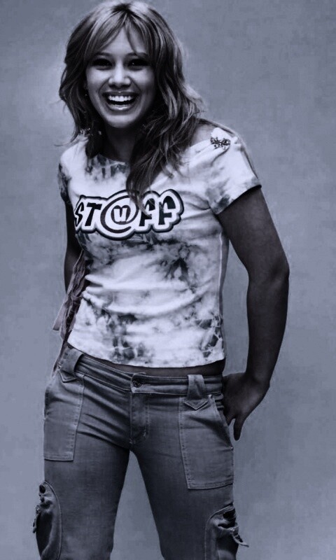 Обои для рабочего стола «Хилари Дафф смеется» 480х800 с фильтром gotham (оригинал 1600х1200)