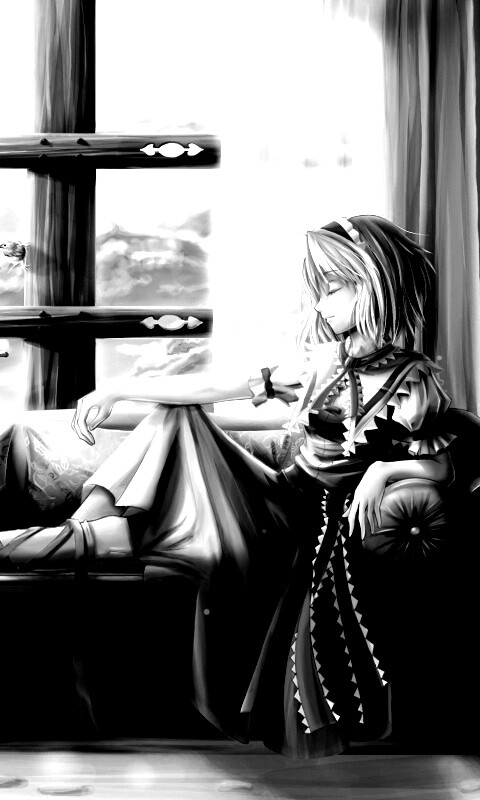 Обои для рабочего стола «Девушка у окна» 480х800 с фильтром inkwell (оригинал 2338х1700)