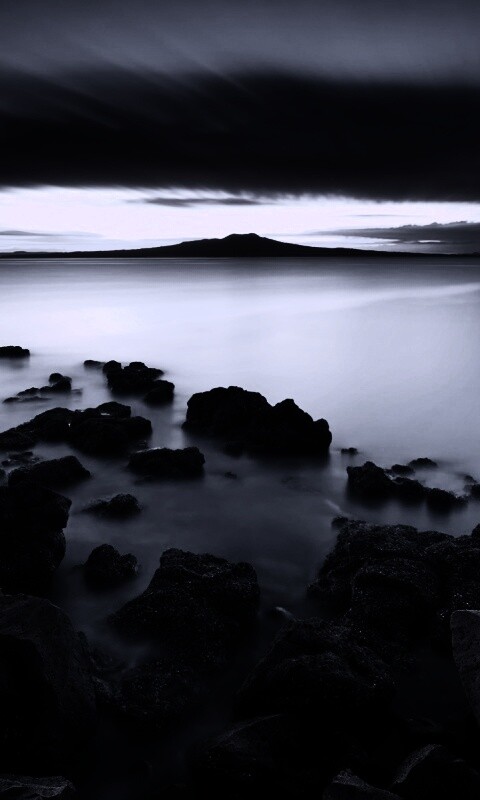 Обои для рабочего стола «Озеро в тумане» 480х800 с фильтром gotham (оригинал 1920х1200)
