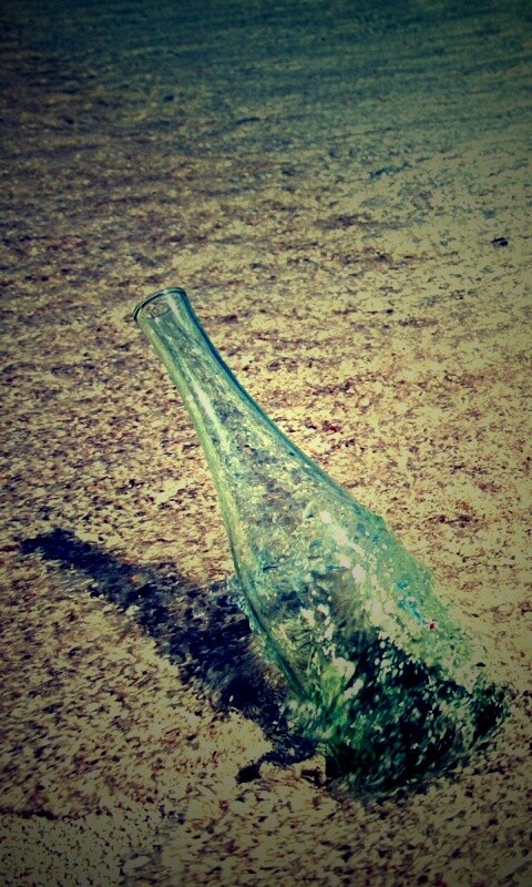 Обои для рабочего стола «Бутылка в песке у воды» 480х800 с фильтром lomo (оригинал 1920х1200)