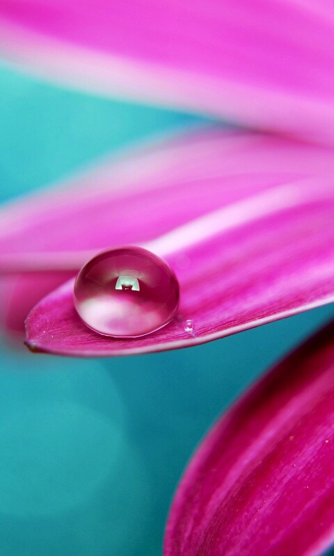 Обои для рабочего стола «Капля на лепестке» 480х800 с фильтром vibrance (оригинал 2560х1600)