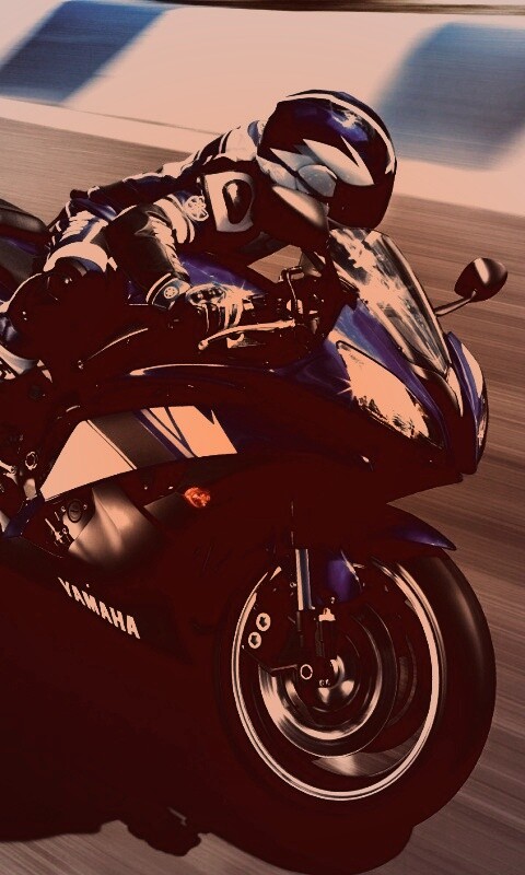Обои для рабочего стола «Мотоциклист на трассе» 480х800 с фильтром toaster (оригинал 1600х990)