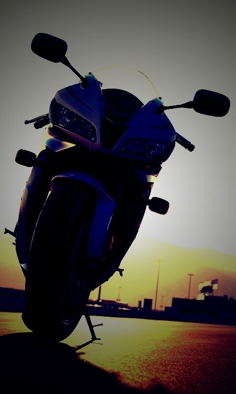 «Мотоцикл на фоне заходящего солнца»