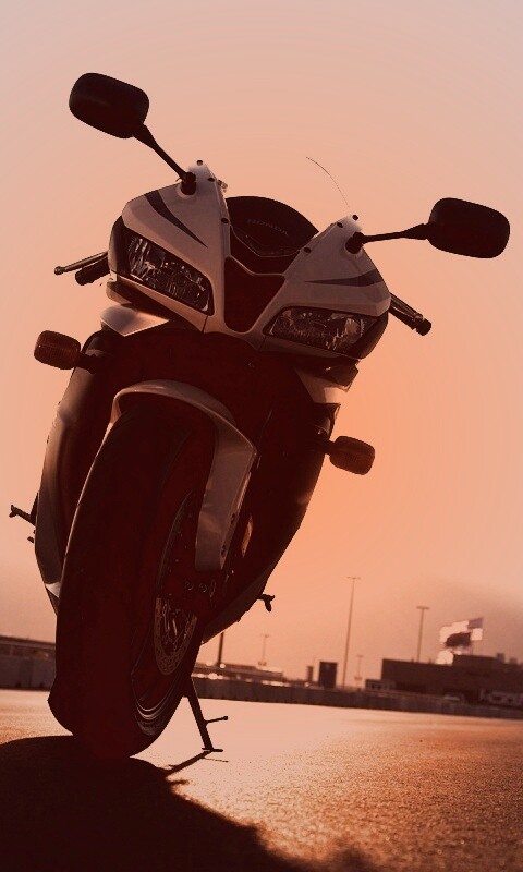 «Мотоцикл на фоне заходящего солнца»