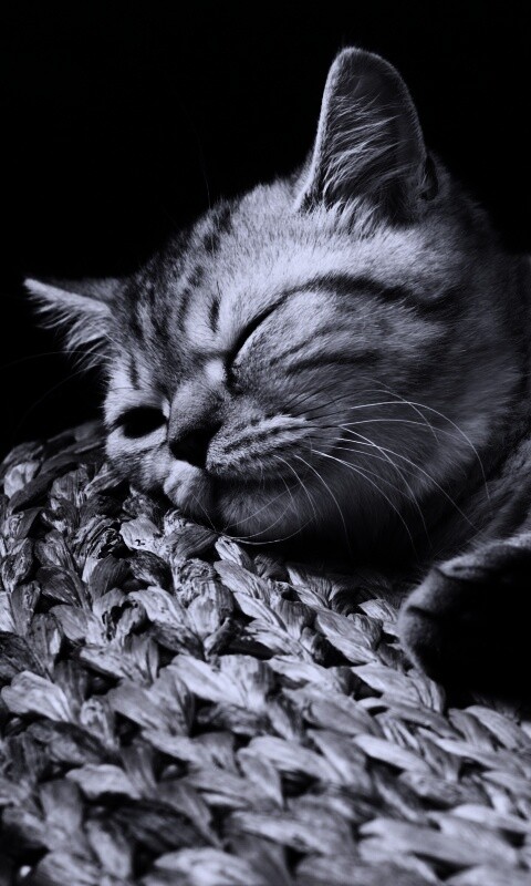 «Пушистый кот спит на корзине»