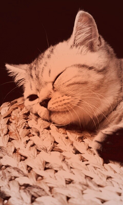 «Пушистый кот спит на корзине»