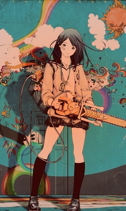 Обои для рабочего стола «Девушка с бензопилой» 480х800 с фильтром toaster (оригинал 2560х1600)