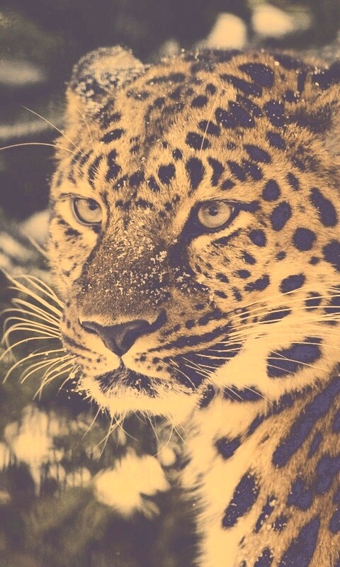 Обои для рабочего стола «Леопард у заснеженной ели» 480х800 с фильтром nashville (оригинал 2560х1600)