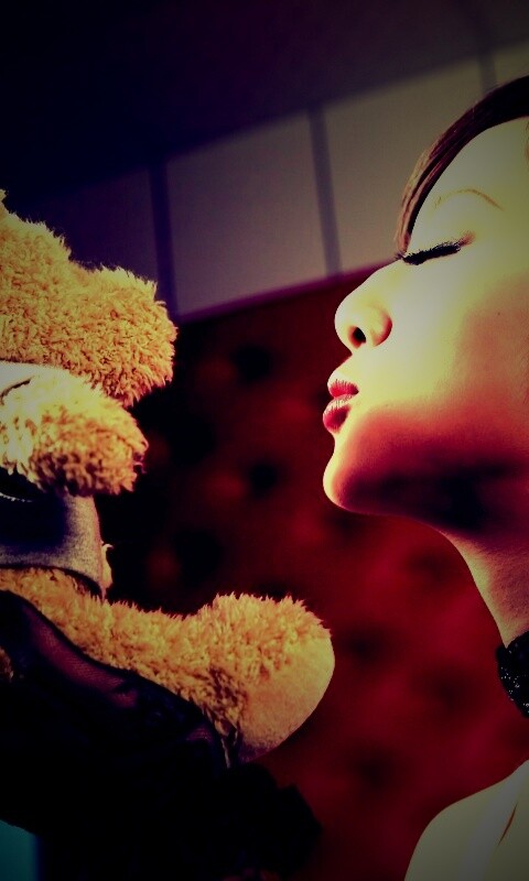 Обои для рабочего стола «Азиатка любит медвежонка» 480х800 с фильтром lomo (оригинал 2560х1600)