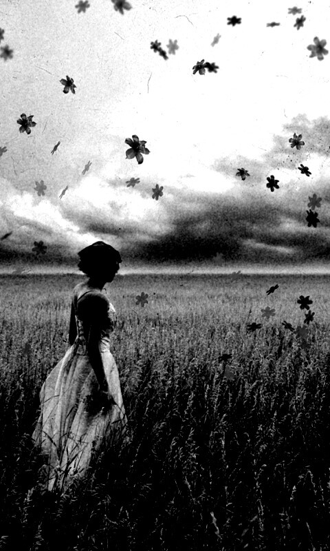 «Грустная девушка в поле травы»