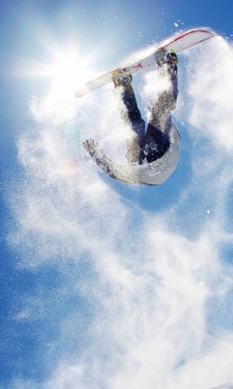 Обои для рабочего стола «Прыжок на сноуборде» 480х800 с фильтром vibrance (оригинал 1920х1200)