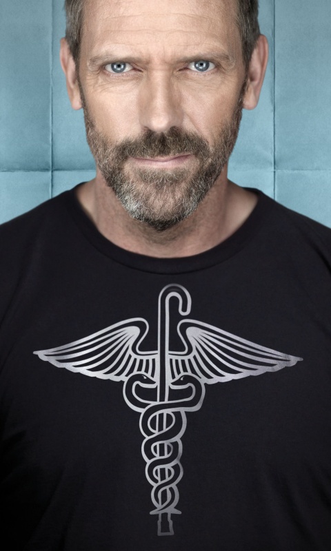Обои для рабочего стола «Доктор Хаус в футболке со змеями на трости» 480х800 (оригинал 1500х2222)