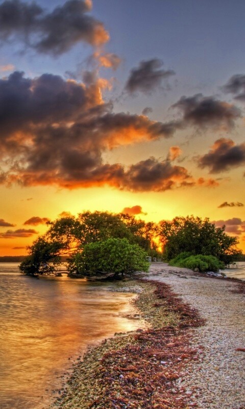 Обои для рабочего стола «Побережье на закате» 480х800 с фильтром vibrance (оригинал 3200х2000)