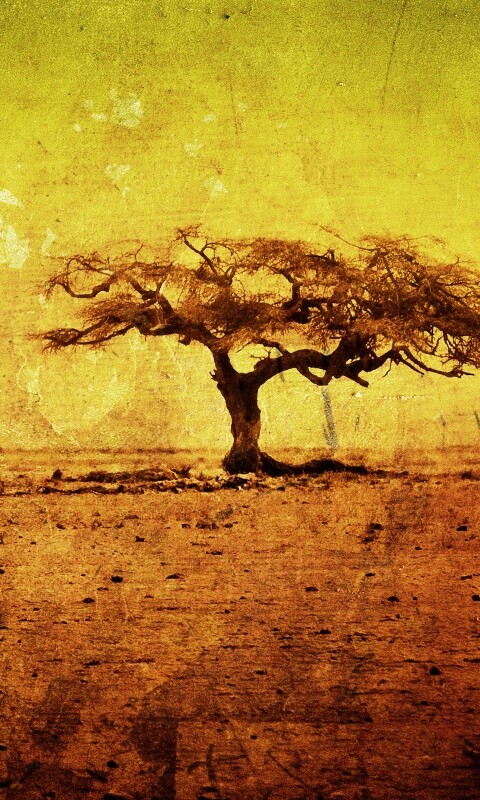 Обои для рабочего стола «Гранжевое дерево в саванне» 480х800 с фильтром vibrance (оригинал 2560х1600)