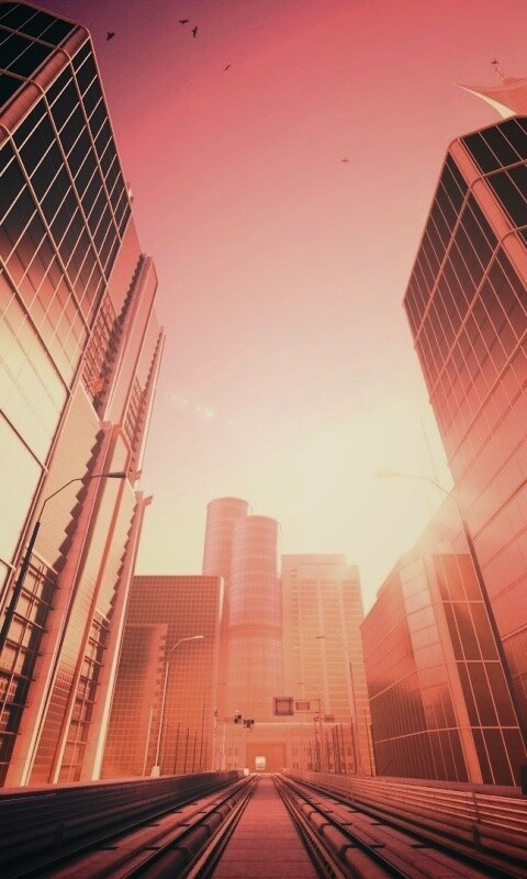 Обои для рабочего стола «Улица из Mirrors Edge» 480х800 с фильтром earlybird (оригинал 1920х1080)