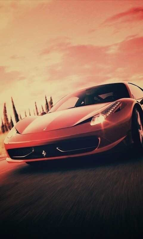 Обои для рабочего стола «Красная Феррари на трассе» 480х800 с фильтром earlybird (оригинал 1920х1200)