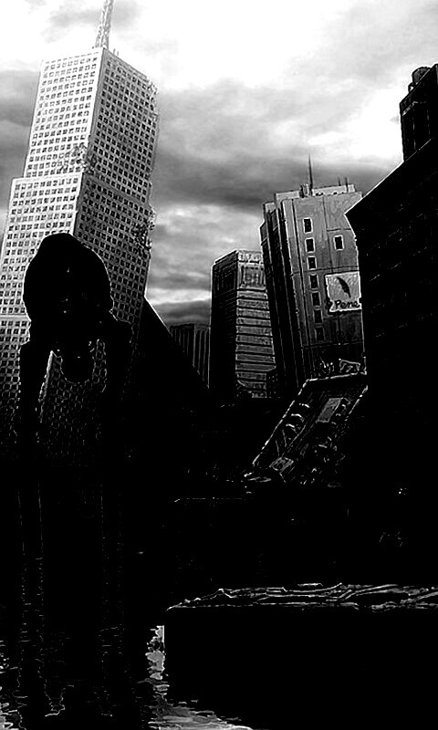 Обои для рабочего стола «Постапокалиптический город» 480х800 с фильтром inkwell (оригинал 1920х1200)