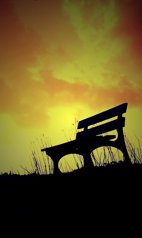 «Силуэт скамейки на фоне неба»
