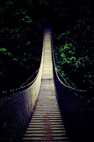 Обои для рабочего стола «Канатный мостик» 320х480 с фильтром lomo (оригинал 2560х1024)