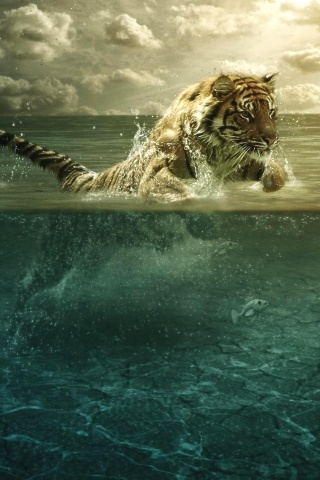 Обои для рабочего стола «Тигр купается» 320х480 (оригинал 2560х2048)