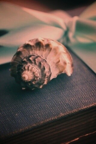 Обои для рабочего стола «Ракушка на подарочном альбоме» 320х480 с фильтром earlybird (оригинал 4752х3168)