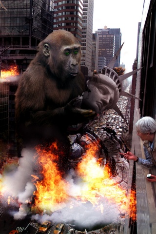 Обои для рабочего стола «Обезьяна терроизирует Нью-Йорк» 320х480 (оригинал 1920х1200)