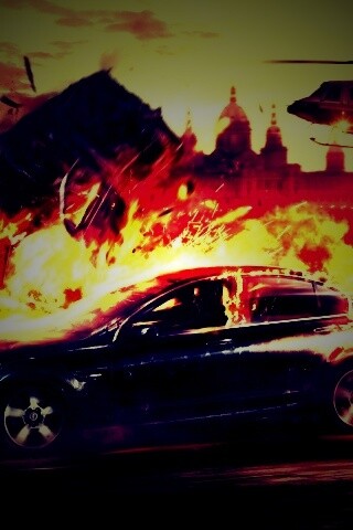 Обои для рабочего стола «Погоня за горящей машиной» 320х480 с фильтром lomo (оригинал 1920х1200)