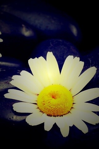 Обои для рабочего стола «Ромашка среди гальки» 320х480 с фильтром lomo (оригинал 3872х2592)