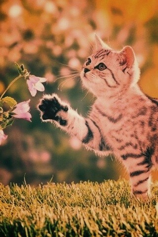 «Котенок играет с цветами»
