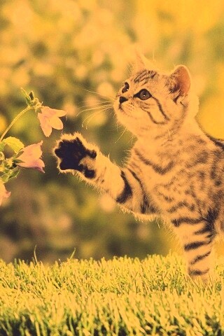 «Котенок играет с цветами»