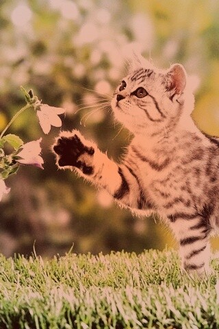 «Котенок играет с цветами»