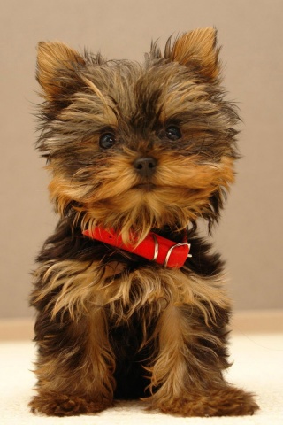 Обои для рабочего стола «Щенок в красном ошейнике» 320х480 (оригинал 1920х1200)