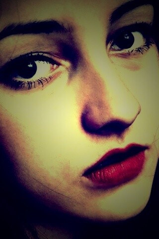 «Брюнетка с ярким макияжем и печальным лицом»