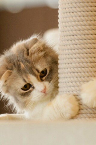 «Пушистая кошка с когтеточкой»