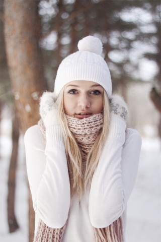 «Девушка в белом в снежном лесу»