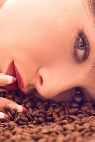 «Соблазнительная девушка с кофейными зернами»