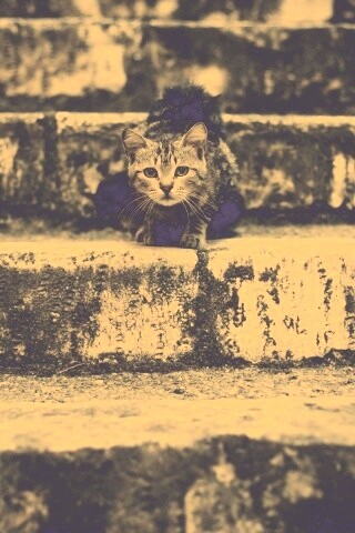 «Растрепанная кошка на ступеньках лестницы»