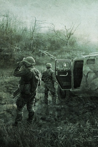 «Солдаты из сталкера на болоте»