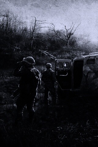 «Солдаты из сталкера на болоте»