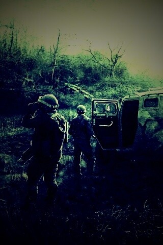 «Солдаты из сталкера на болоте»