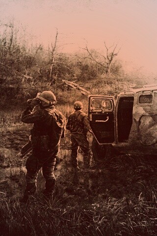 «Солдаты из сталкера на болоте»
