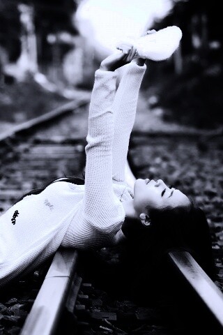 «Модель на железнодорожных путях»