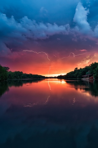 «Молнии на фоне заката, стандартные обои mac»